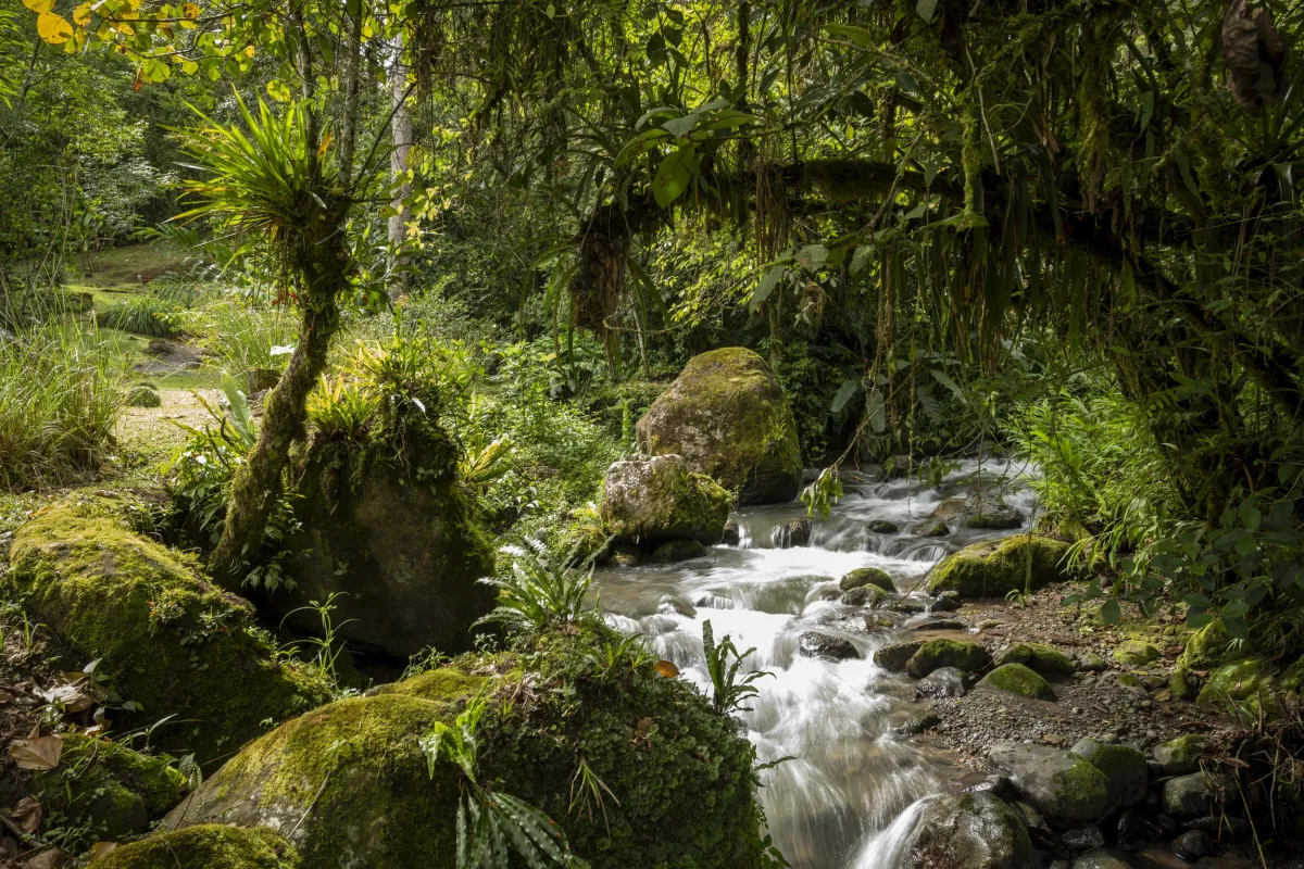 Você pode escolher entre chalés privados ou semi-privados, todos com banheiro exclusivo, varandas mobiliadas ao ar livre e vistas que se perdem na neblina da cloud forest, a 1.600 metros de altitude.